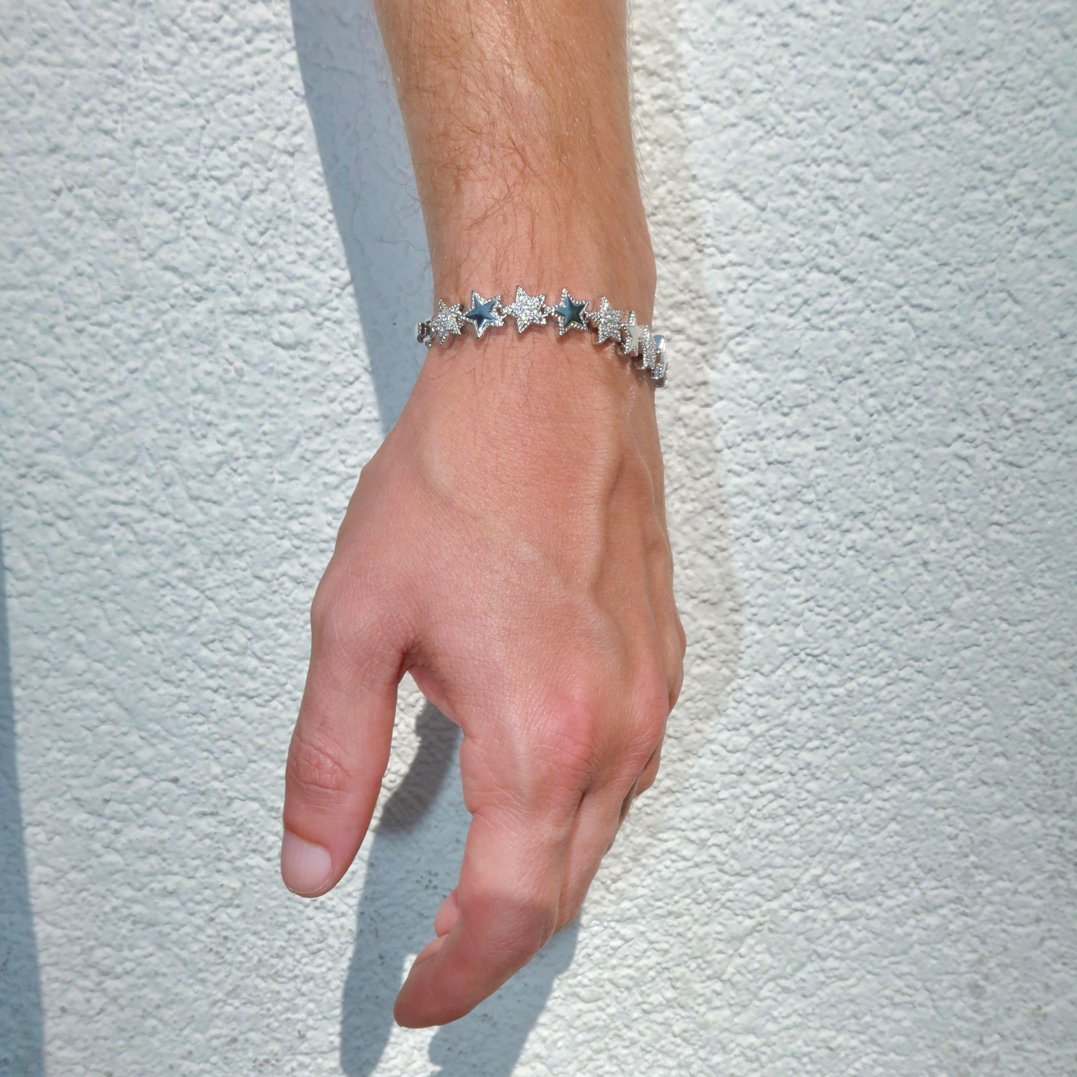 7mm White Gold Plated Iced Star Bracelet