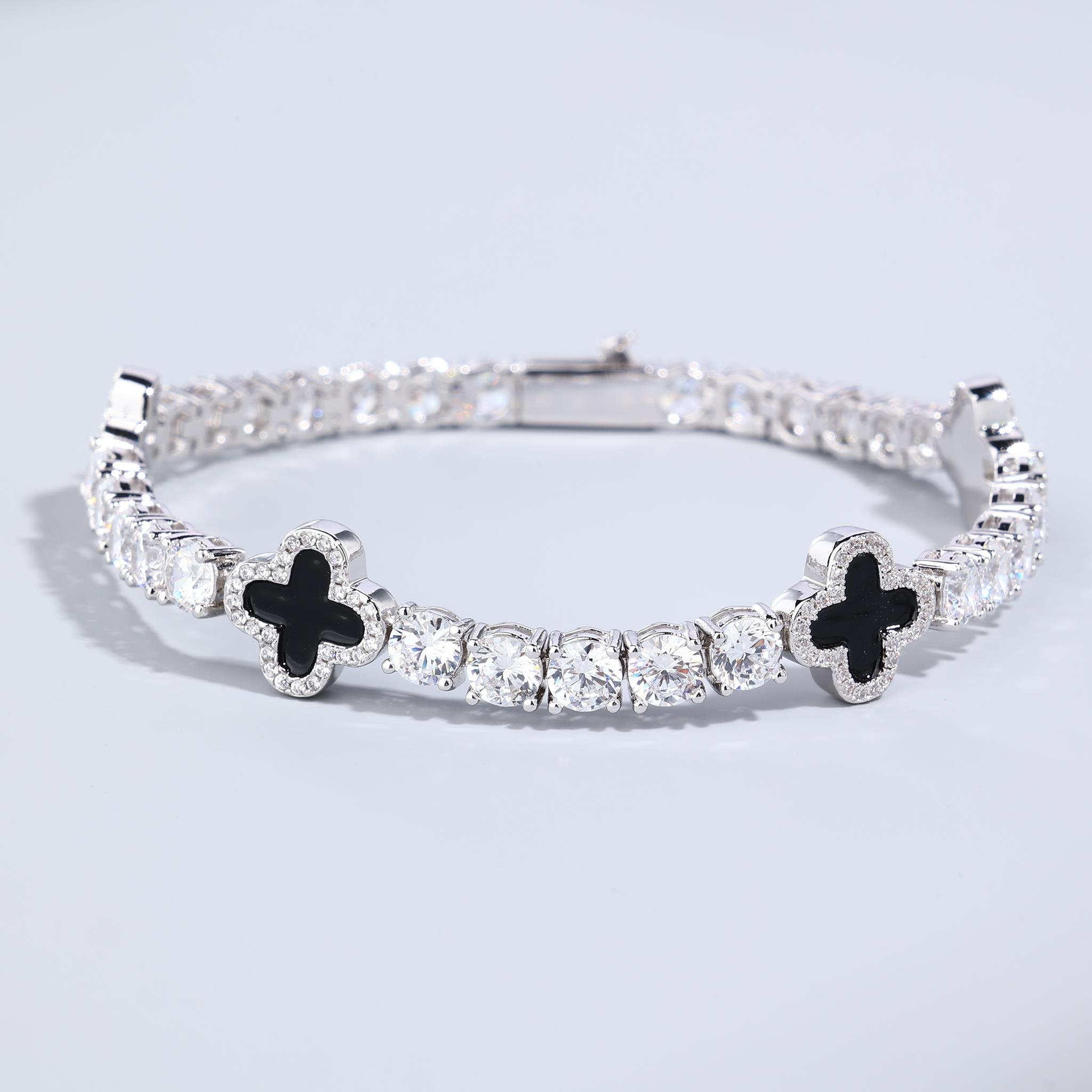 5mm Black Motif White Gold Plated Tennis Bracelet